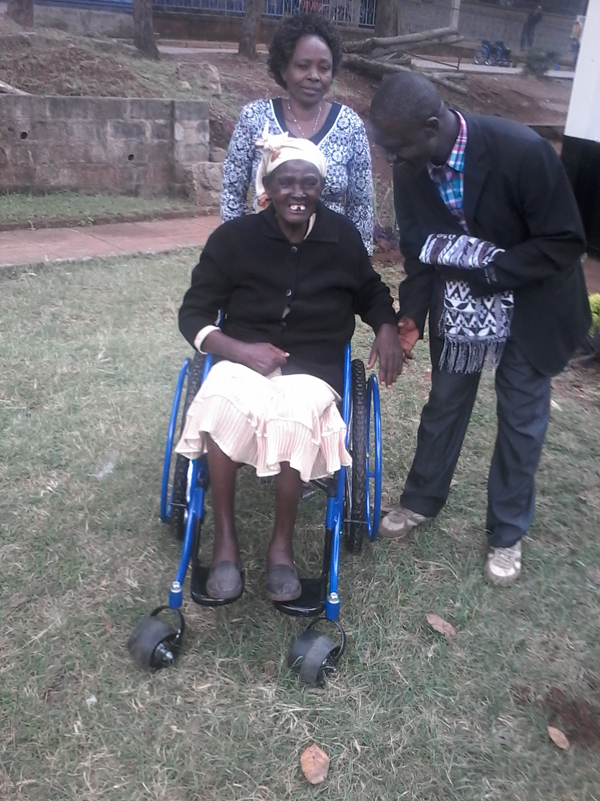 Finally I had a response from the Orthopaedic services manager for the Nairobi branch of the Association for the Physically disabled of Kenya. They very kindly offered to donate a wheelchair the only difficulty was they insisted that the recipient had to travel to be fitted for it on two occasions. This would involve a round trip of 260 km each time and with little transport apart from the Matatu, local bus. This was impossible for an elderly and infirm woman.